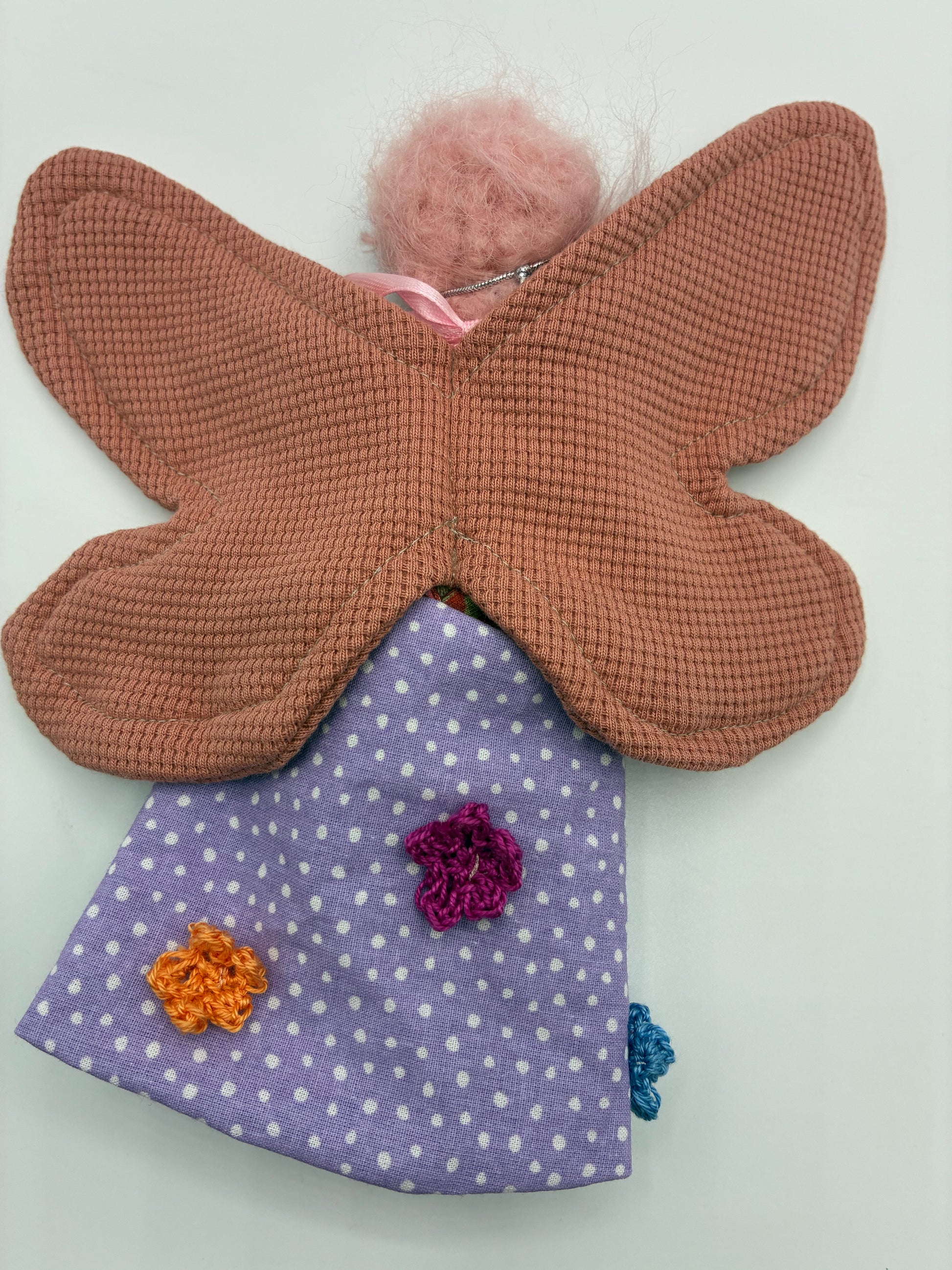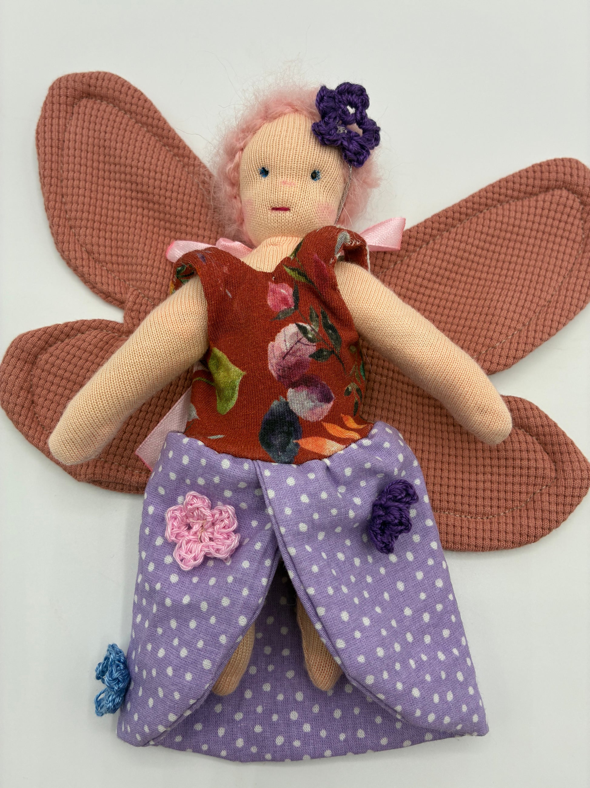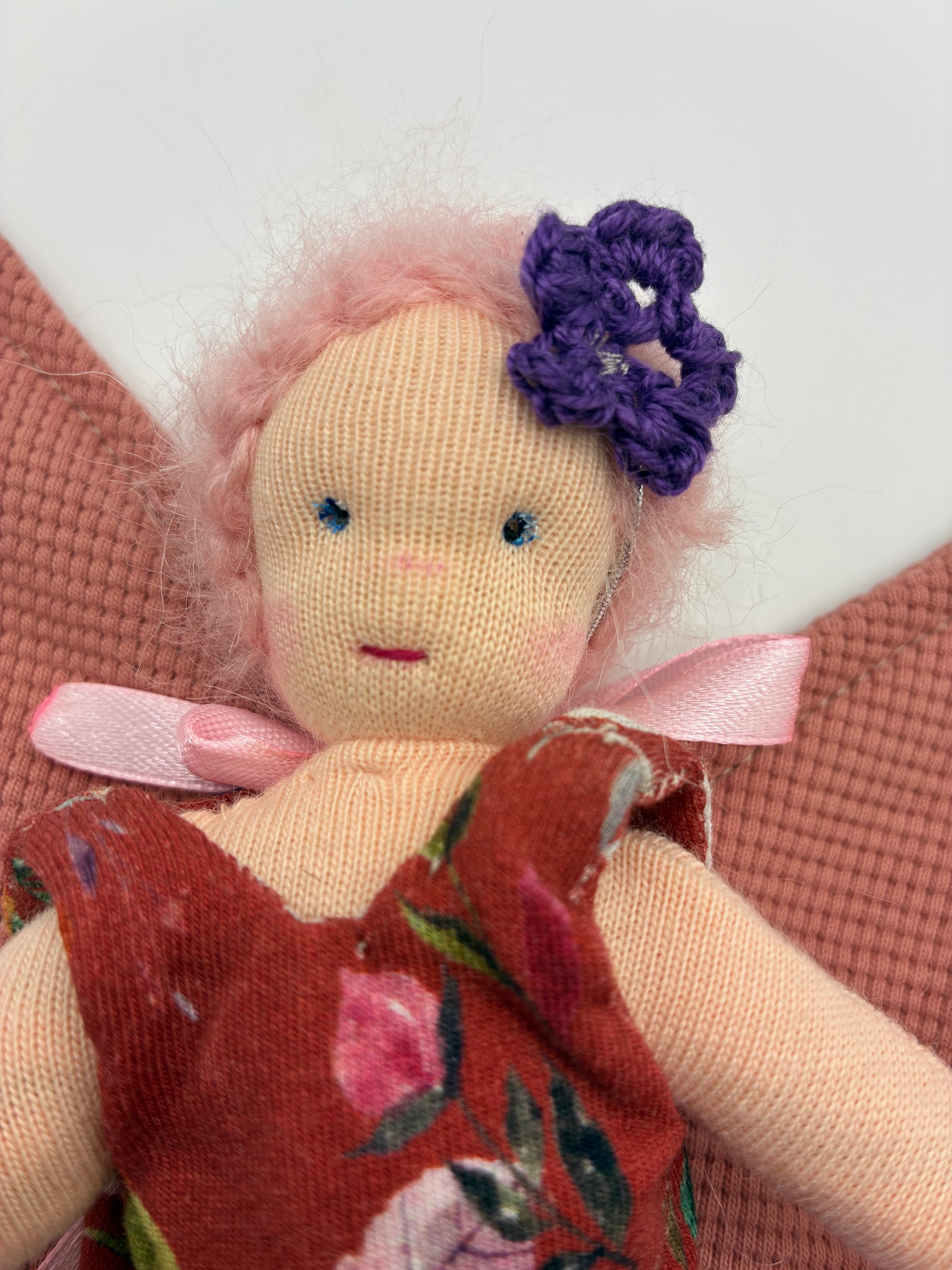 - Haare: rosa Haare aus feinstem Mohair, die der Fee einen zarten und lebendigen Look verleihen.