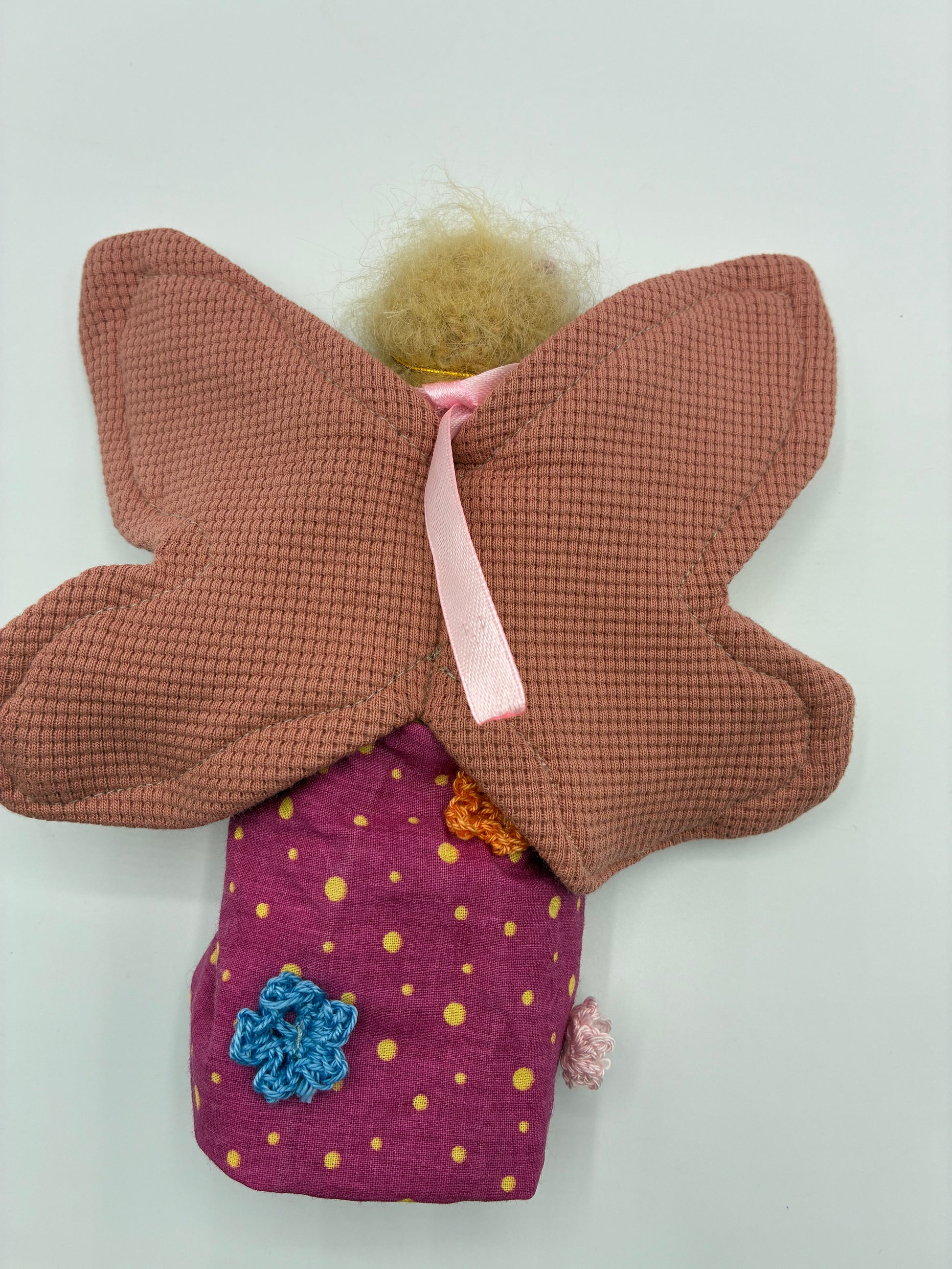 - Haare: blonde Haare aus feinstem Mohair, die der Fee einen zarten und lebendigen Look verleihen.