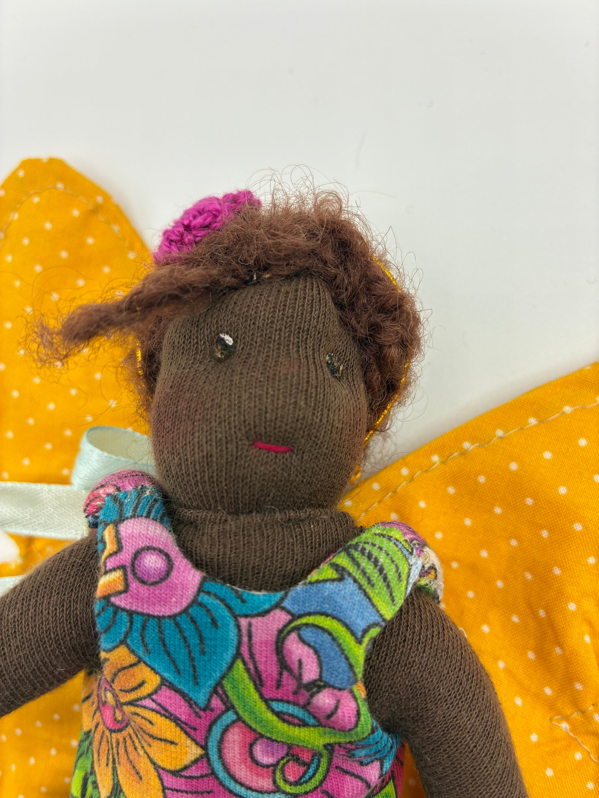 - Haare: Rote Haare aus feinstem Mohair, die der Fee einen zarten und lebendigen Look verleihen.