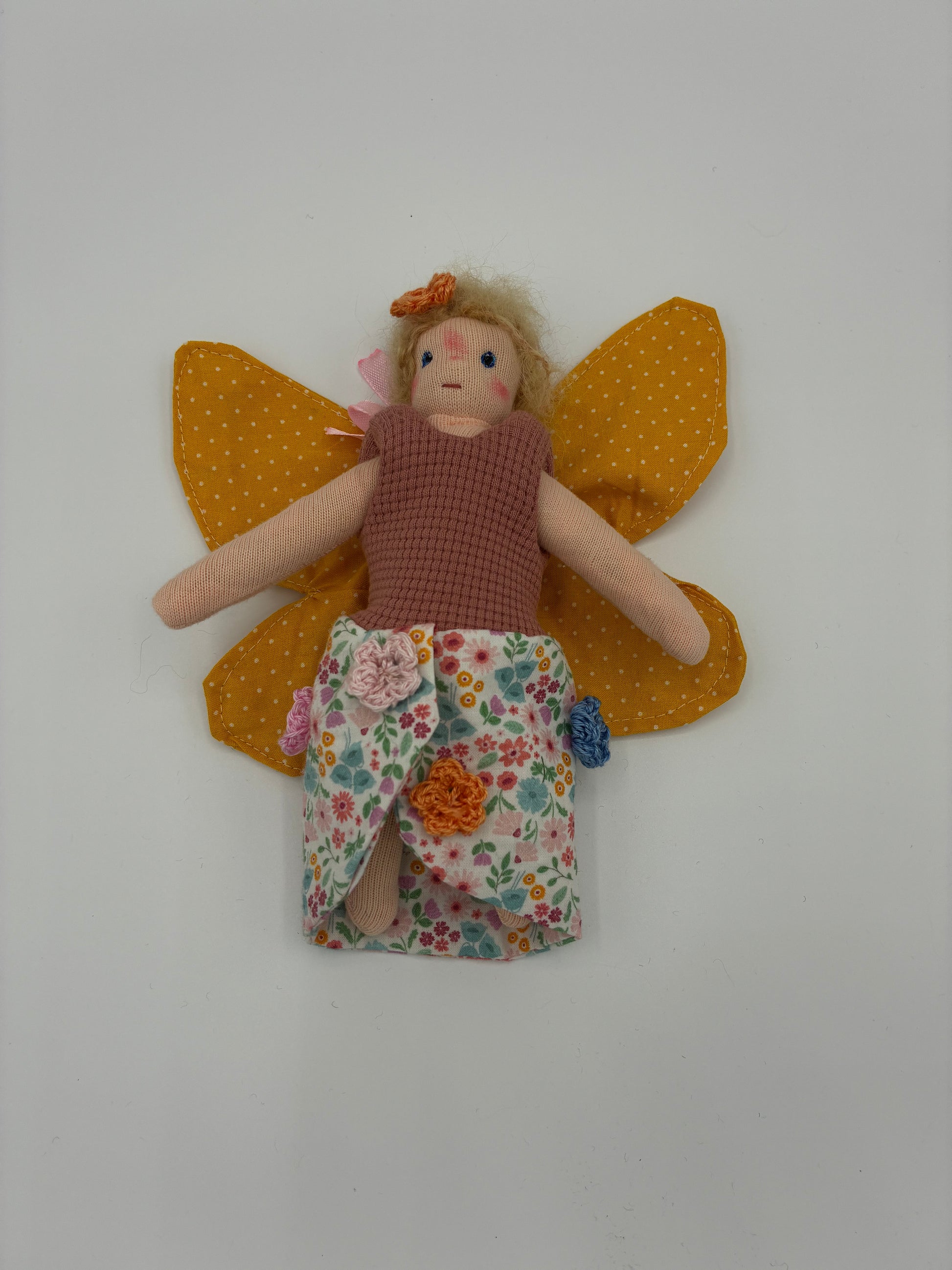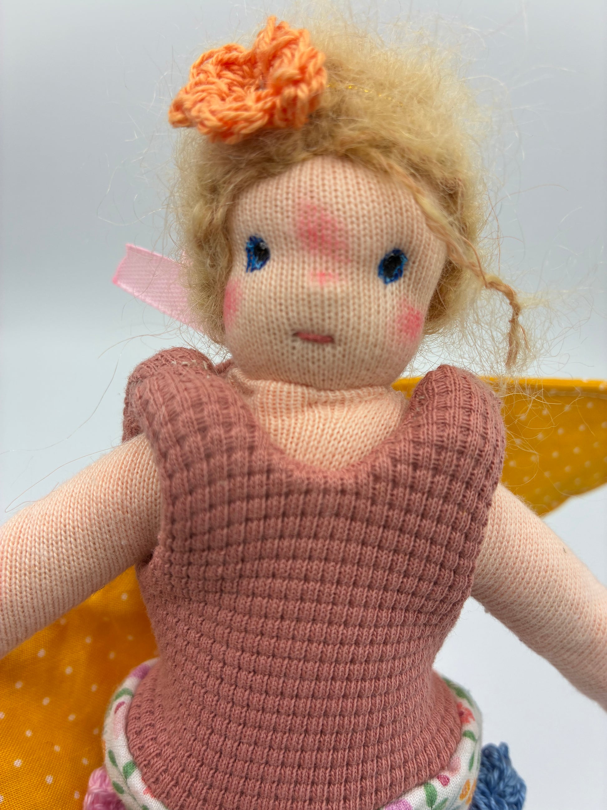 - Haare: Blonde Haare aus feinstem Mohair, die der Fee einen zarten und lebendigen Look verleihen.