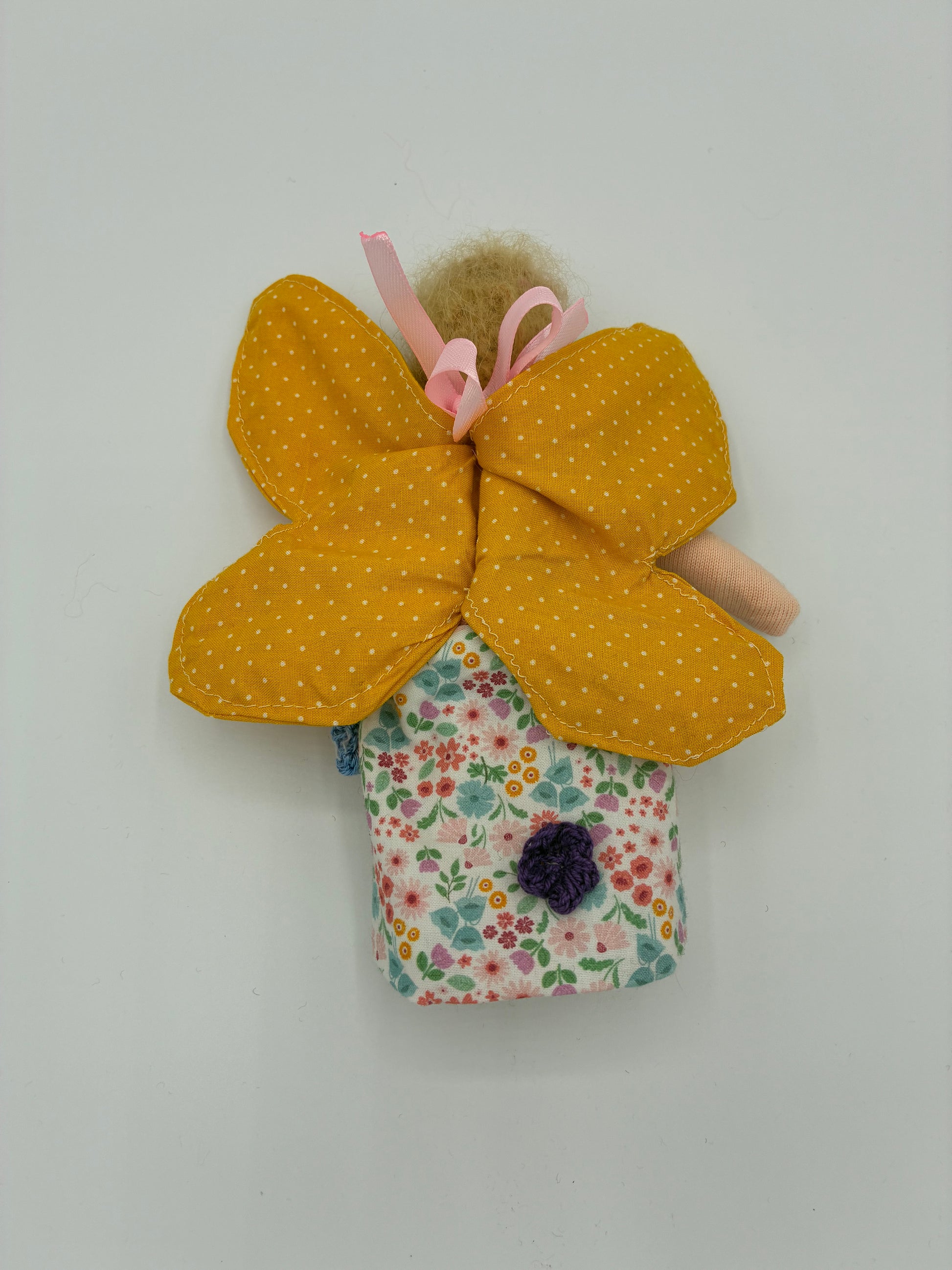 Lassen Sie sich von unserer zauberhaften Blumenfee verzaubern, die mit viel Liebe und Sorgfalt handgemacht wurde. Diese exquisite Figur ist aus hochwertiger Schafwolle und einem weichen Baumwolltrikot gefertigt und bringt einen Hauch von Magie in Ihr Zuhause.