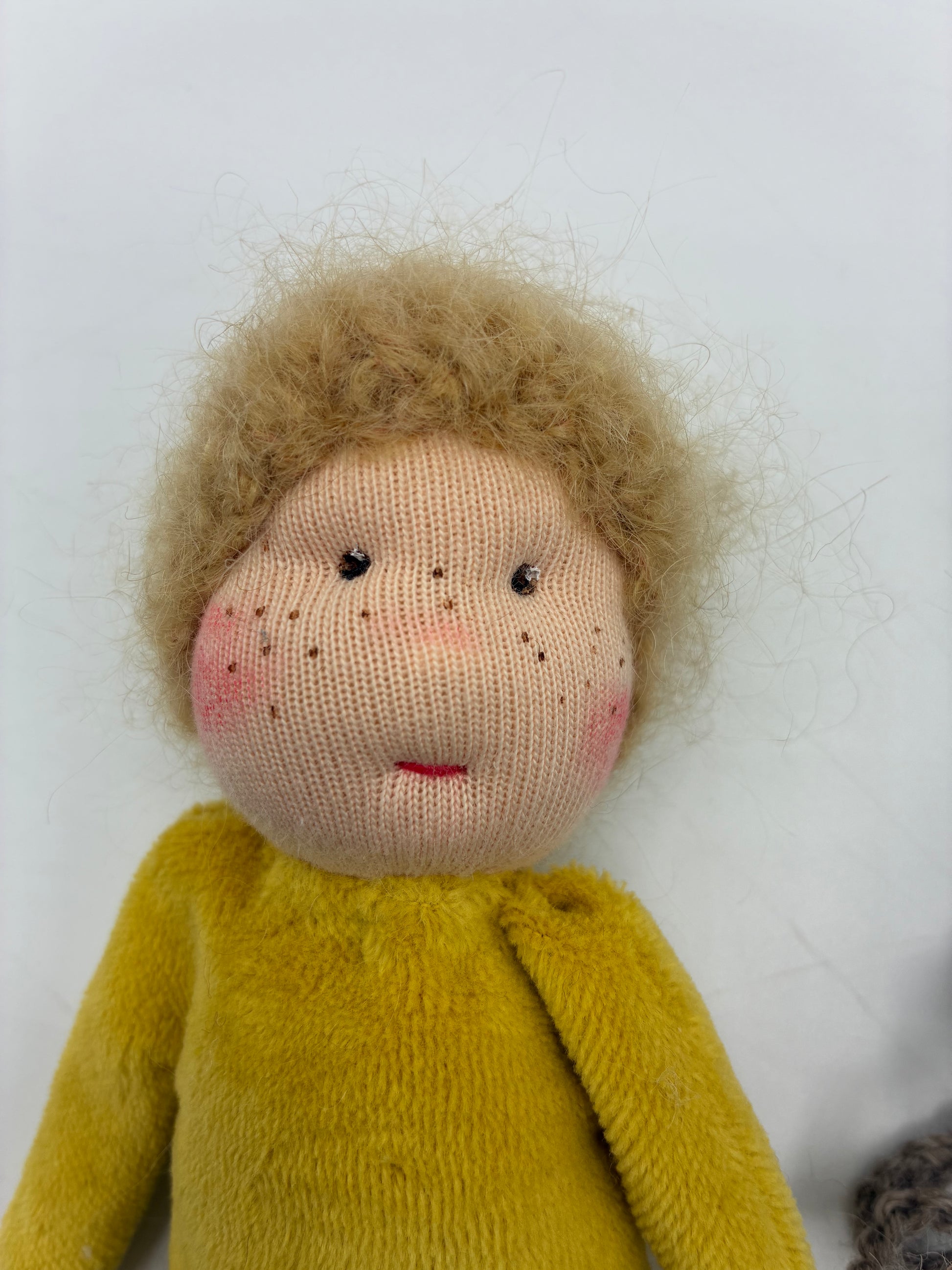 - Püppchen: Die Waldorf-Puppe hat einen Kopf und Körper aus Schafwolle, der mit Baumwolltrikot überzogen ist. Ihr Körper ist aus weichem, kuscheligem Baumollnicistoff gefertigt. Das Gesicht der Puppe ist handgemalt, und die Haare bestehen aus hochwertiger Mohairwolle.