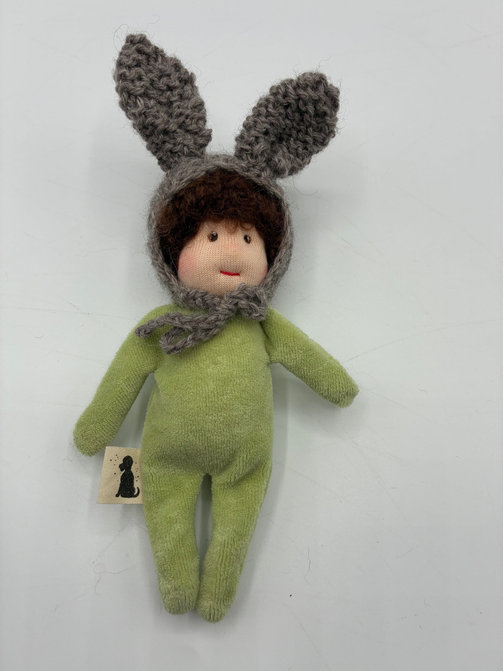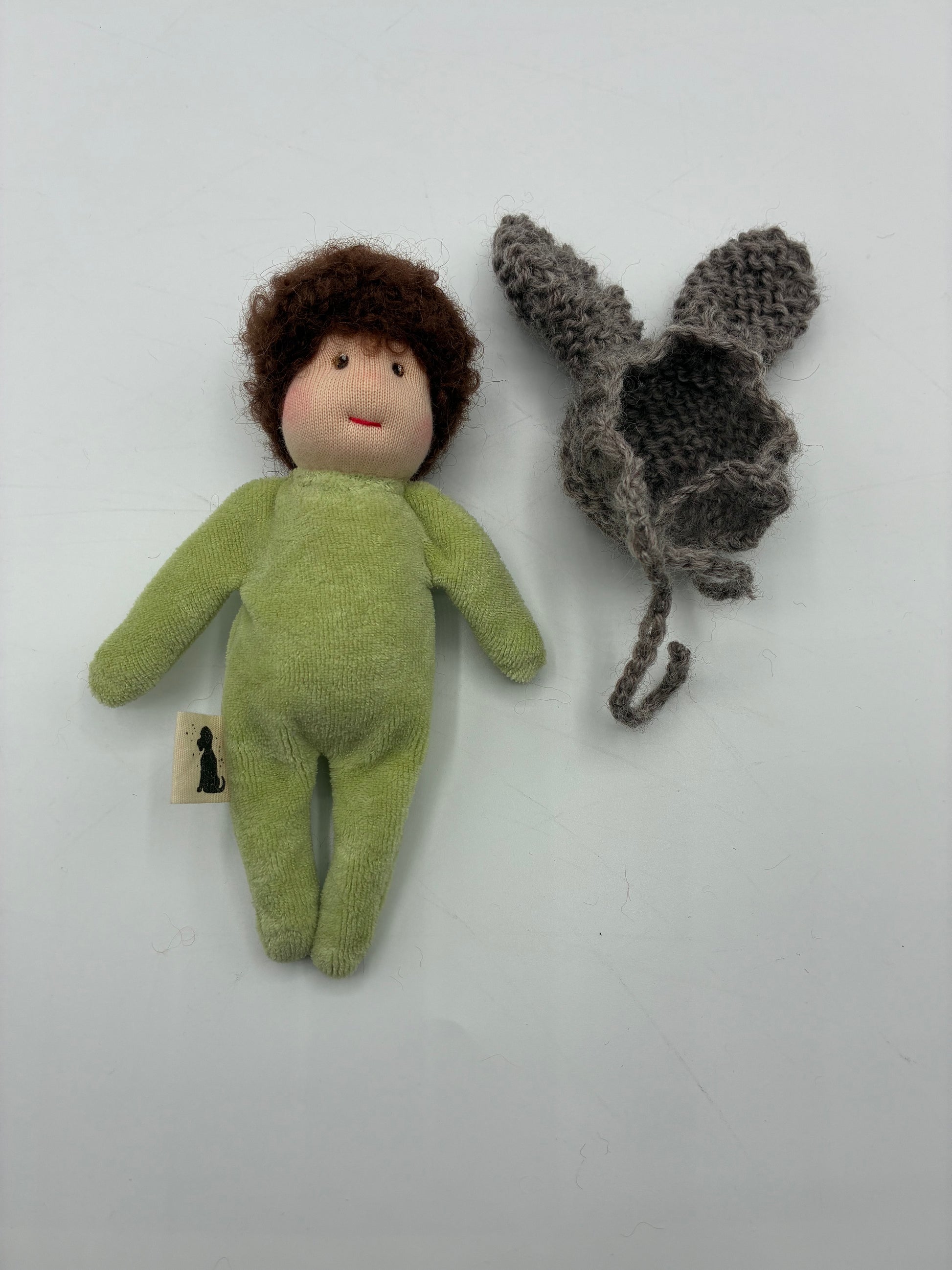 Maße: Die Puppe ist ohne Mütze etwa 20 cm groß.
