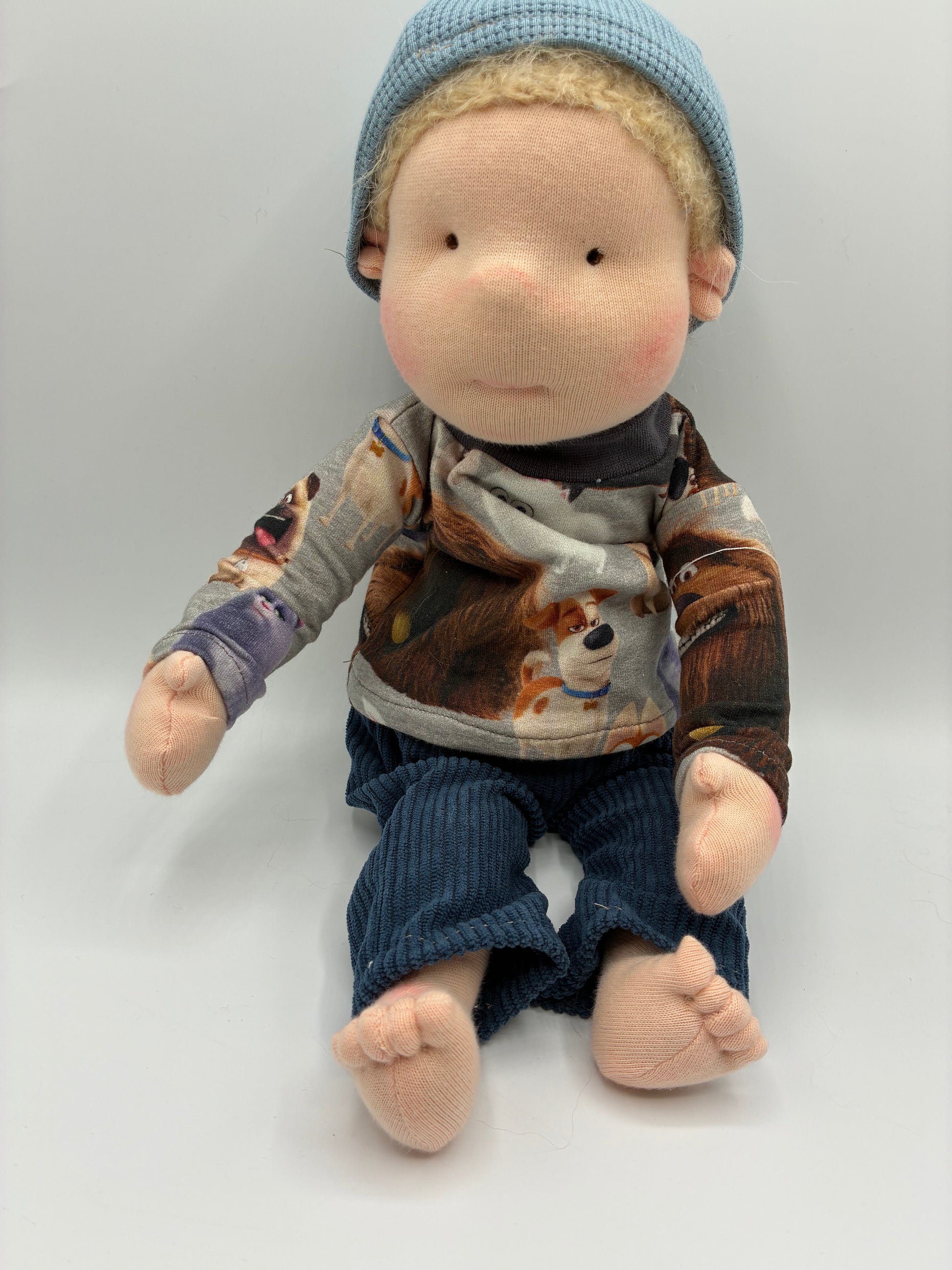 Entdecken Sie die bezaubernde Puppe Romeo,ein handgearbeitetes Unikat im charmanten Waldorfstil. Mit einer Größe von etwa 35 cm ist Romeo der perfekte Begleiter für kleine und große Abenteuer.