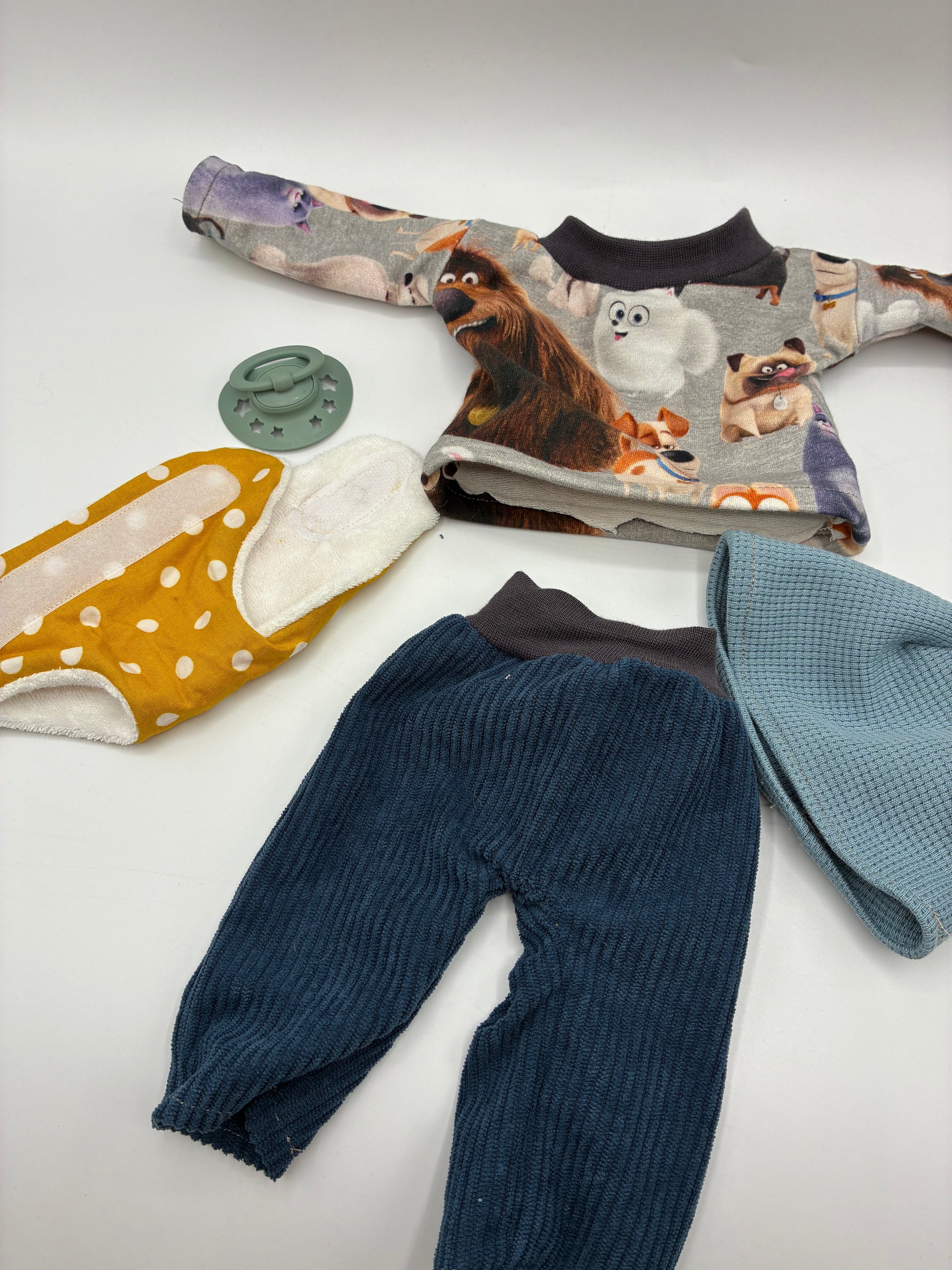 - Windel: Eine praktische Windel aus Baumwollfrottee sorgt dafür, dass Romeo immer bereit für neue Abenteuer ist.